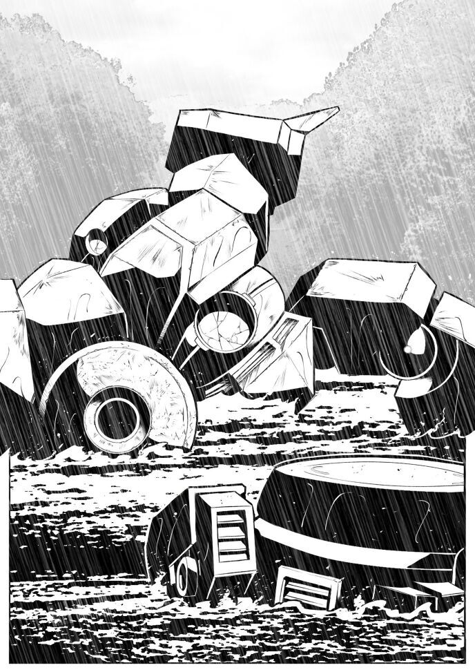 荒れ狂う風雨が生身の父に降り注ぐ。僕はアーケシウスを慎重に操作して父の身体を操縦槽から救い出すと、反対の手で覆うようにして岸へとアーケシウスを引き上げた。