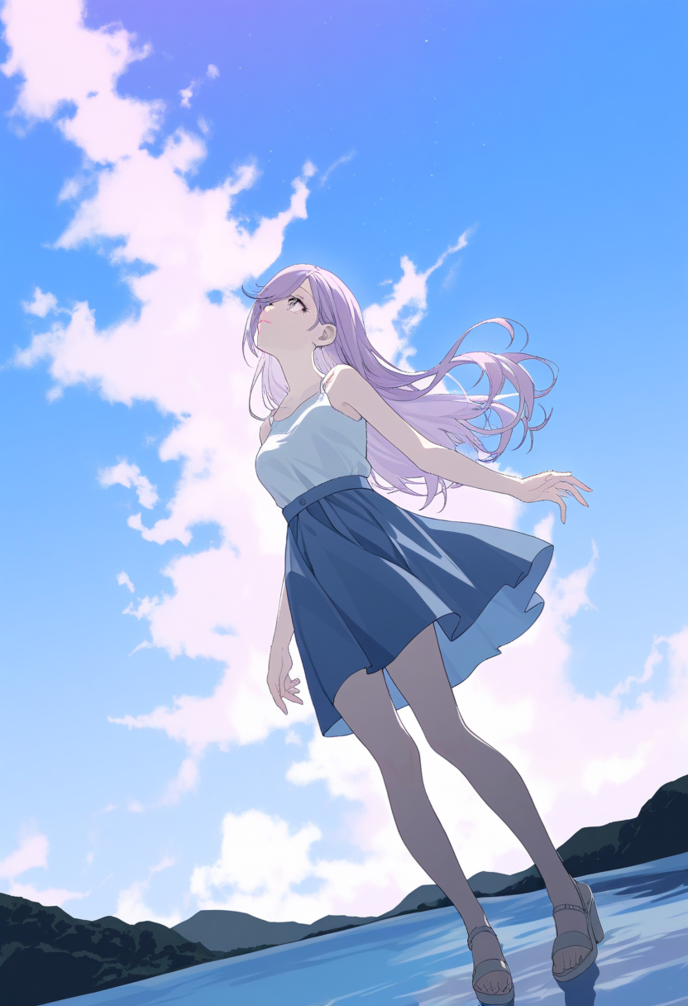 青い空に白い雲で君と描いた夢、広がっていくジオメトリック