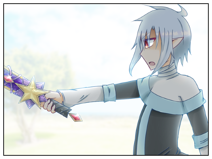 そこにいたのは、先輩たちと同年代くらいの、蒼い髪と星を象った剣を持ち、黒を基調とした服を纏った青年だった。
