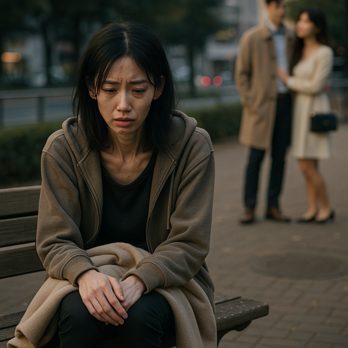 その夜、莉子(本物)は、自分の部屋にも帰れず、公園のベンチで毛布にくるまっていた。