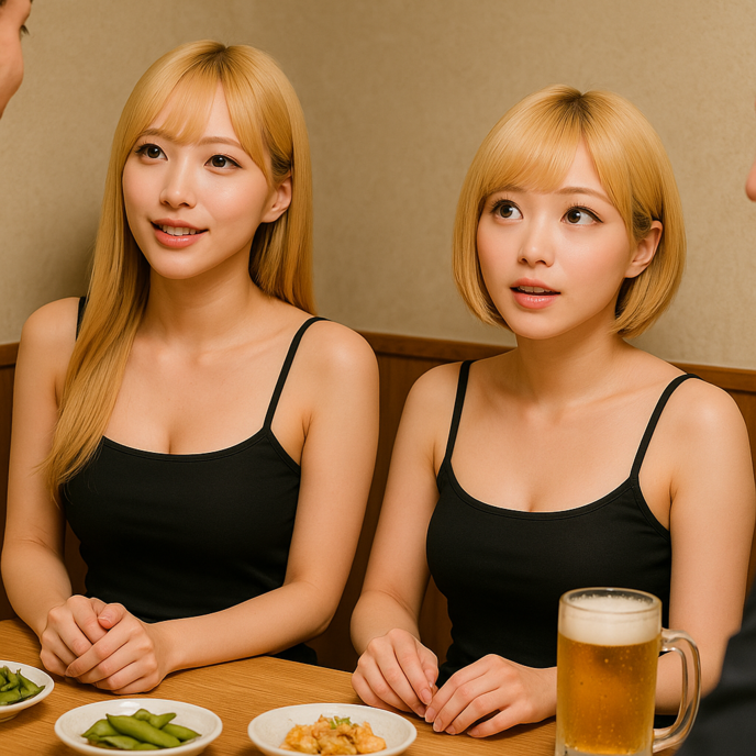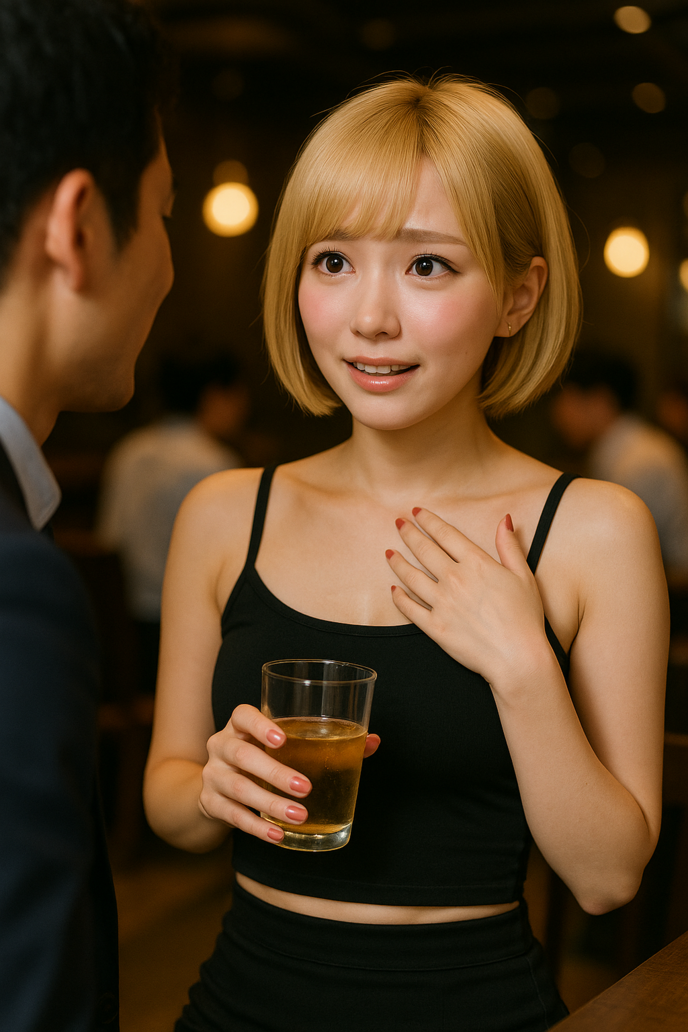 玲奈は金髪ロングの髪をさらりと揺らし、隣の男性に上目遣いで話しかける。