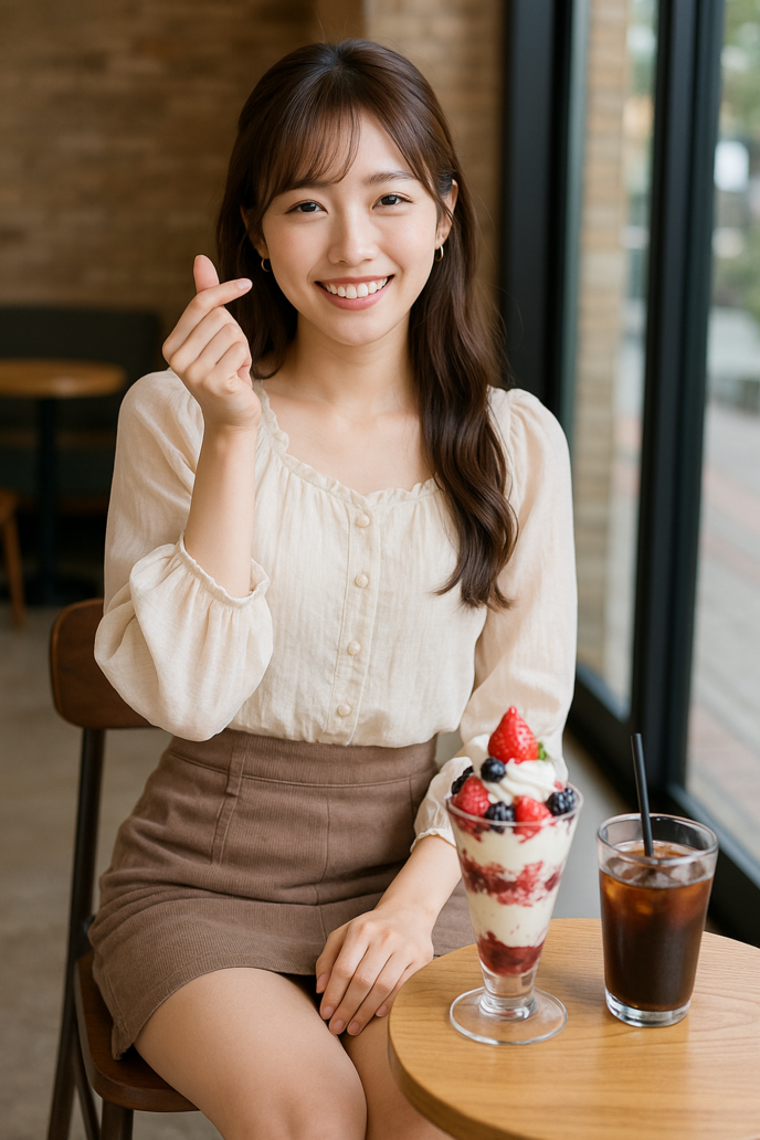 ──スイーツ店のテーブルに並ぶ、映えるパフェとコーヒー。