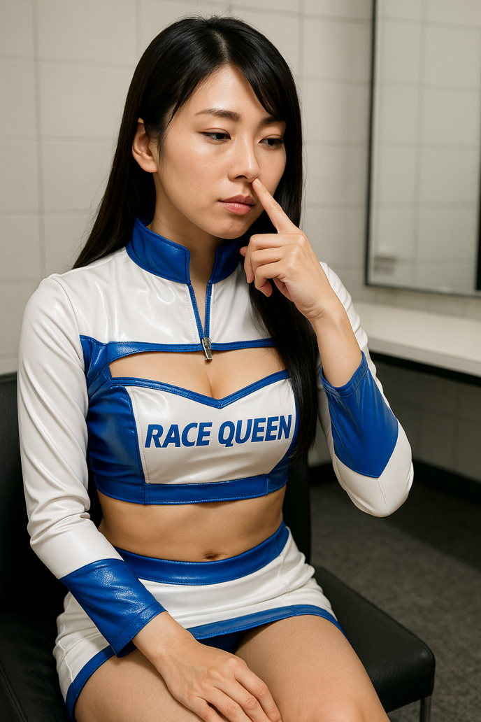 その表情には、レースクイーンとしての自信と、舞台裏でしか見せない素顔の両方が宿っていた。