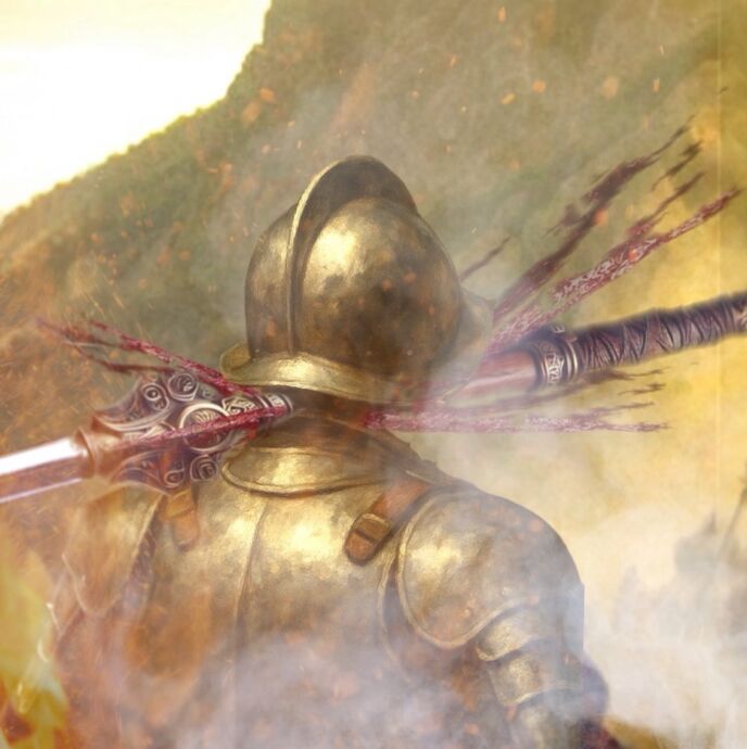 立派な髭を蓄え、幾つもの刃物傷がある鎧を纏った騎士が