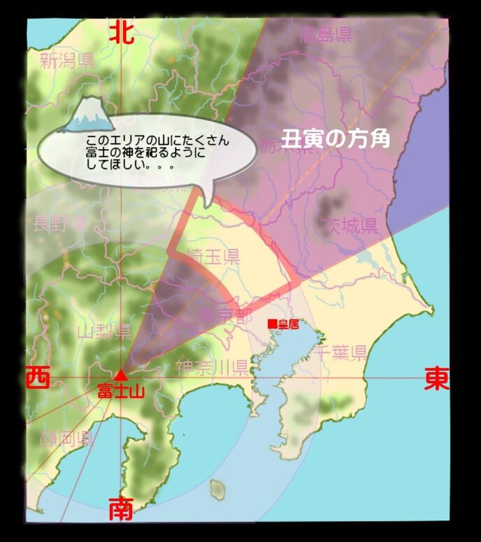 そこで、地図を作って富士から丑寅の方向を調べてみた。