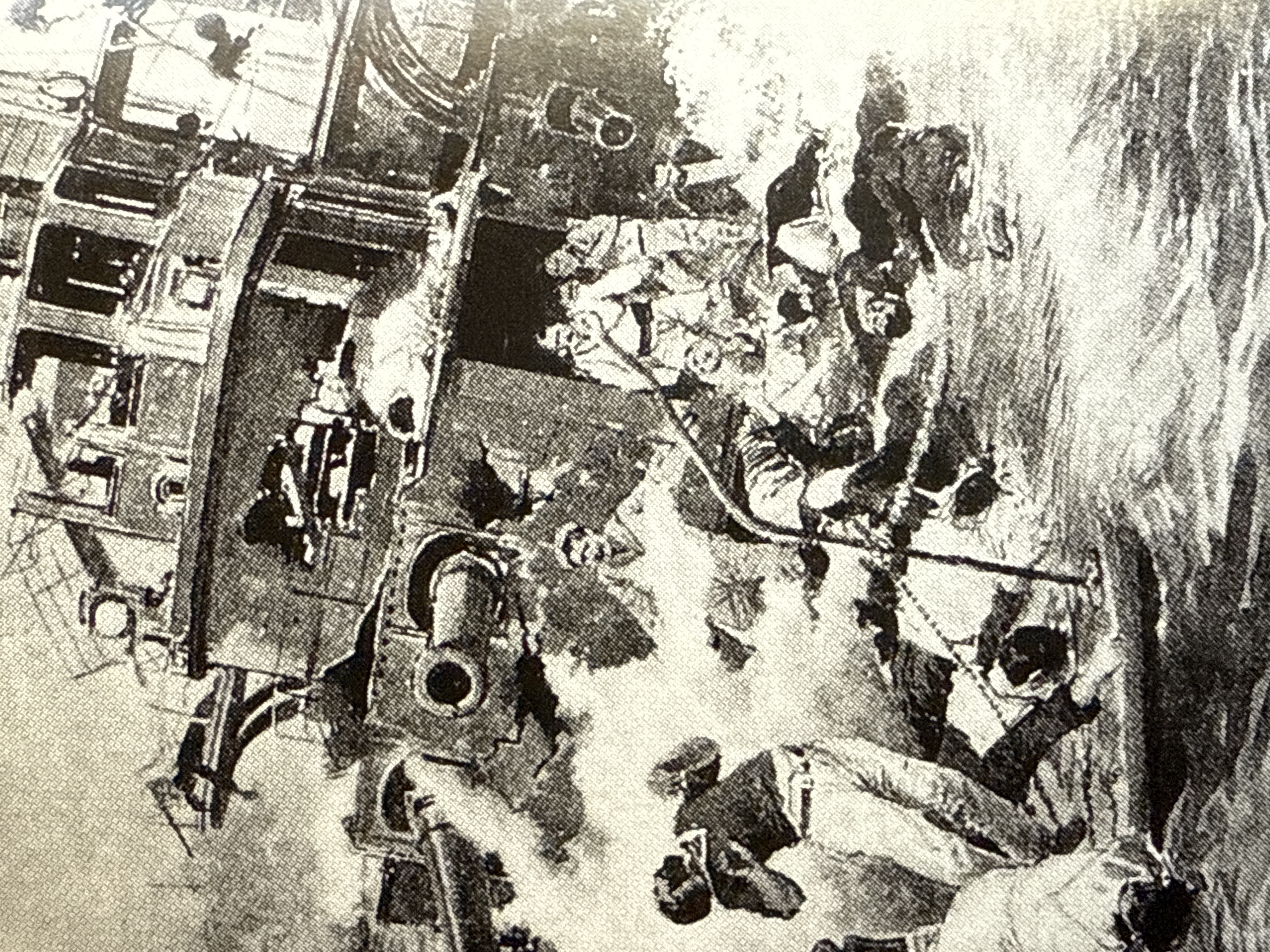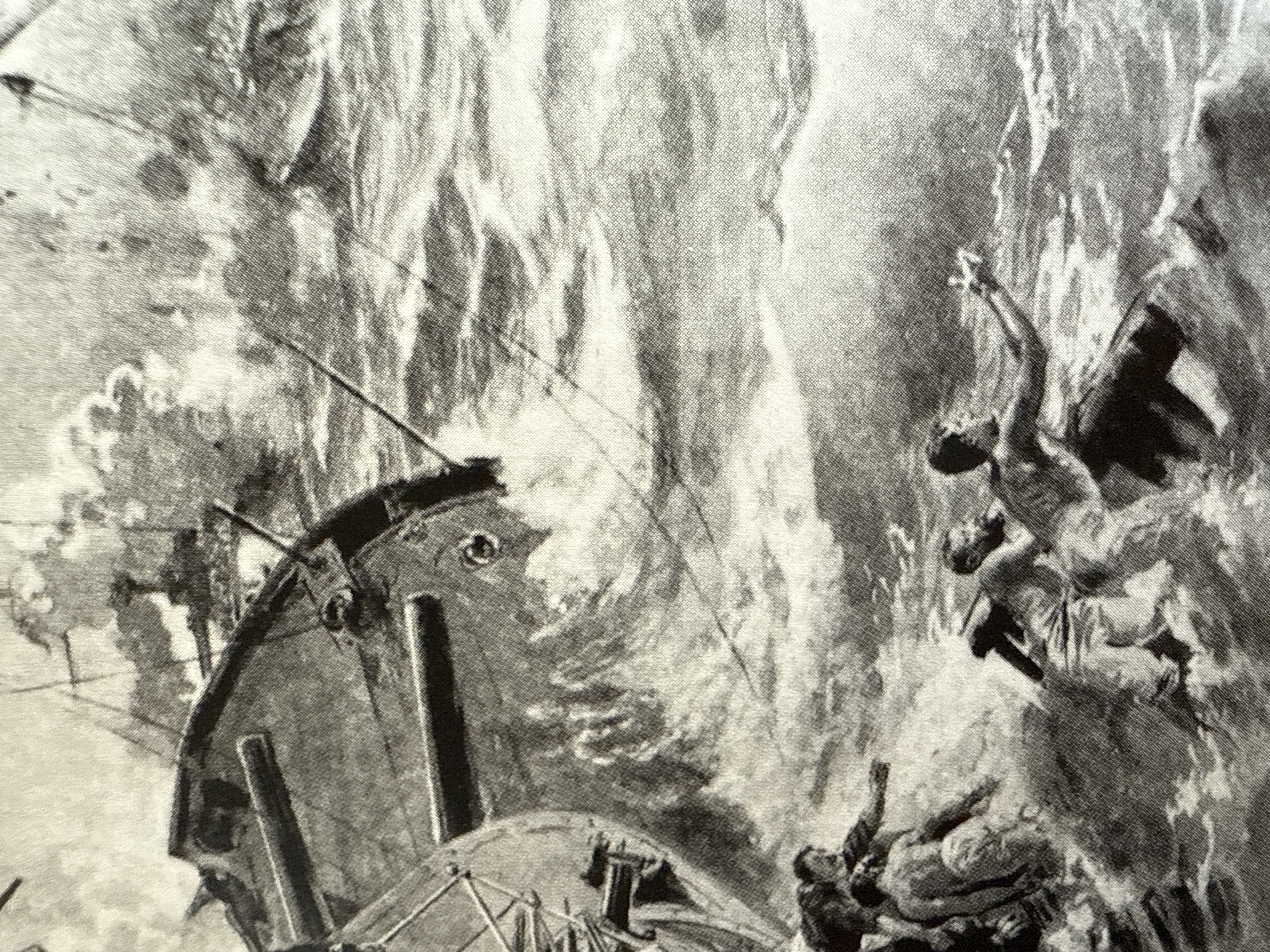煙突は撃ち抜かれマストは折られ、絶望の淵に立つ旗艦ら「スワロフ」の乗組員。