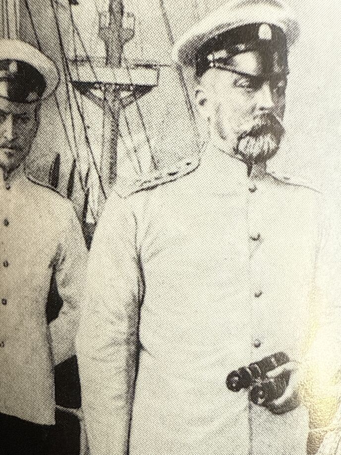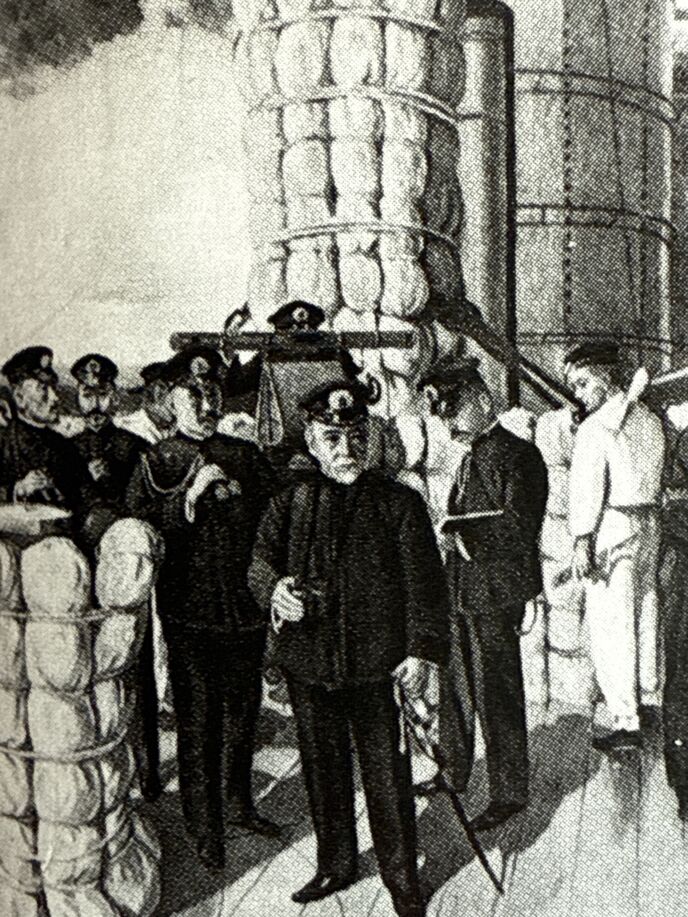 ニコライ皇帝の「戦局の一挙逆転を!」という期待を一身に背負って艦隊を率いるロシアバルチック艦隊のロジェストウェスキー司令長官