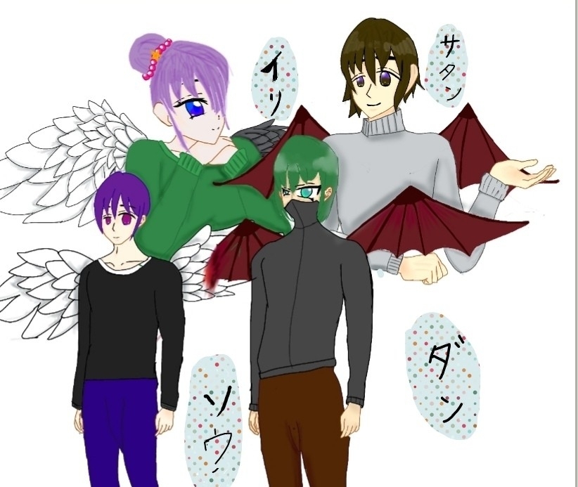 サタン様のところヘ戻り天使が攻めに来ることを話した。「怪我はないか?」まず、俺たちの心配をした。回復できないような傷がある悪魔たちに薬を塗った。どんなに怪我をしても死ぬことがない薬だった。サタン様を守る役目を貰った。 俺とサタン様そしてほかの悪魔たちも戦いに備えた。いよいよ天使が攻めてきた。