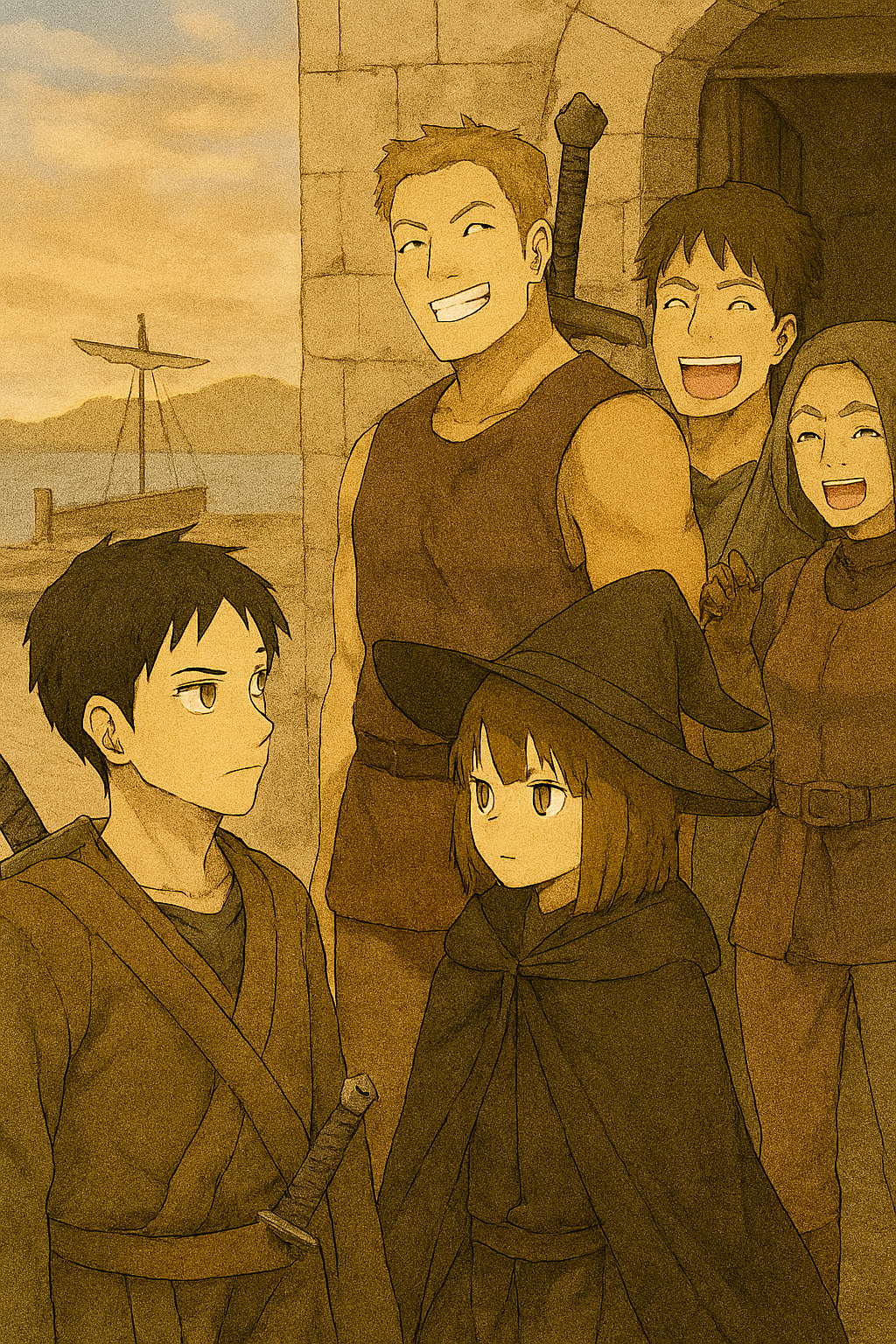 ヒロシとミサエさんは船頭に2人分の渡し賃の鉄貨2枚を払って渡し船に乗り込んだ。先に乗っていた3人の男性冒険者は全員が背中に大きなバスターソードを背負っていて皆同じような格好をしていた。女性冒険者3名はメイスを持っている冒険者もいたが、後の二人は腰に少し短めのショートソードを帯剣していた。