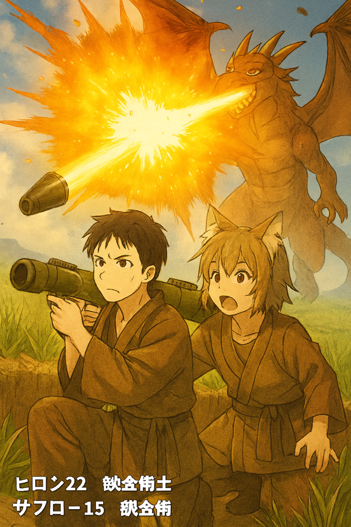 ヒロシとサブローが撃った自動追尾ミサイルはレッサードラゴンの腹に当って大爆発を起こした。