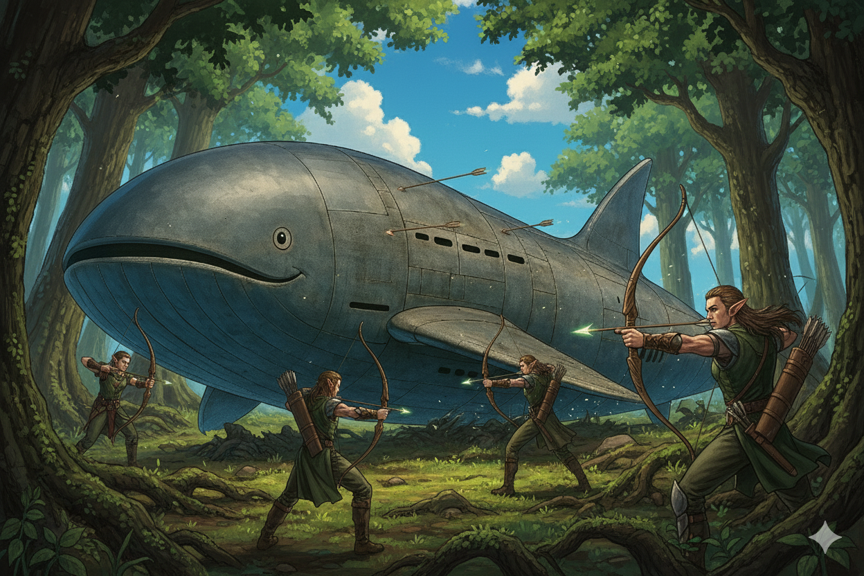 やがて、彼はゆっくりと弓を下ろし、背後のエルフたちもそれに倣った。