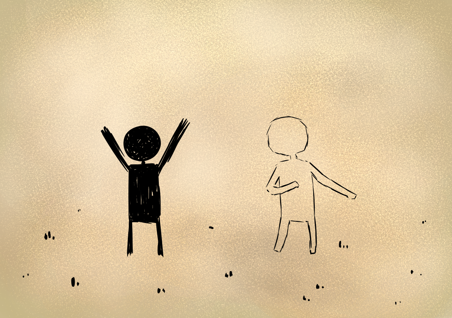 ある日突然、真っ白さんは男に別れを告げました。また一人になるのは寂しいという男に、この世界にはまだ君の仲間が散らばっている。旅をして仲間を集めれば寂しくないと言って去っていきました。真っ白さんの言葉を信じた男は世界中を旅して、段々と仲間を増やしていきました。