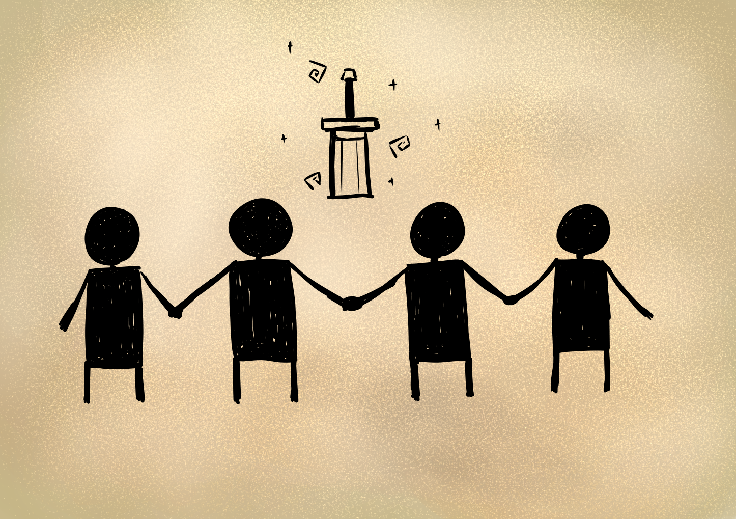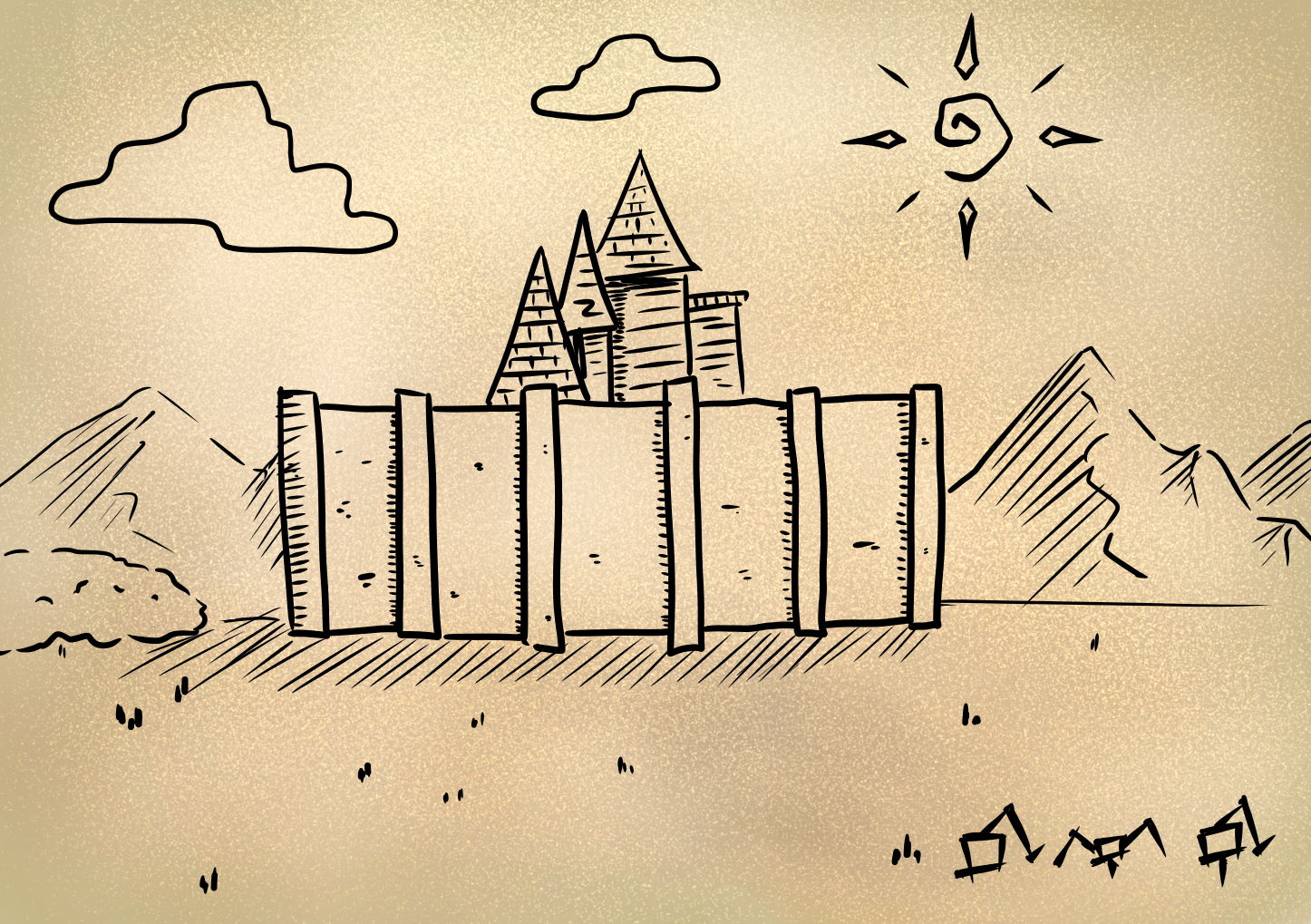 そして化け物たちがいなくなったその地に剣を突き立てると、男はそこに住むことにしました。すると隠れていた人間たちも次第にそこに集まっていき、次第に大きな村になっていきました。