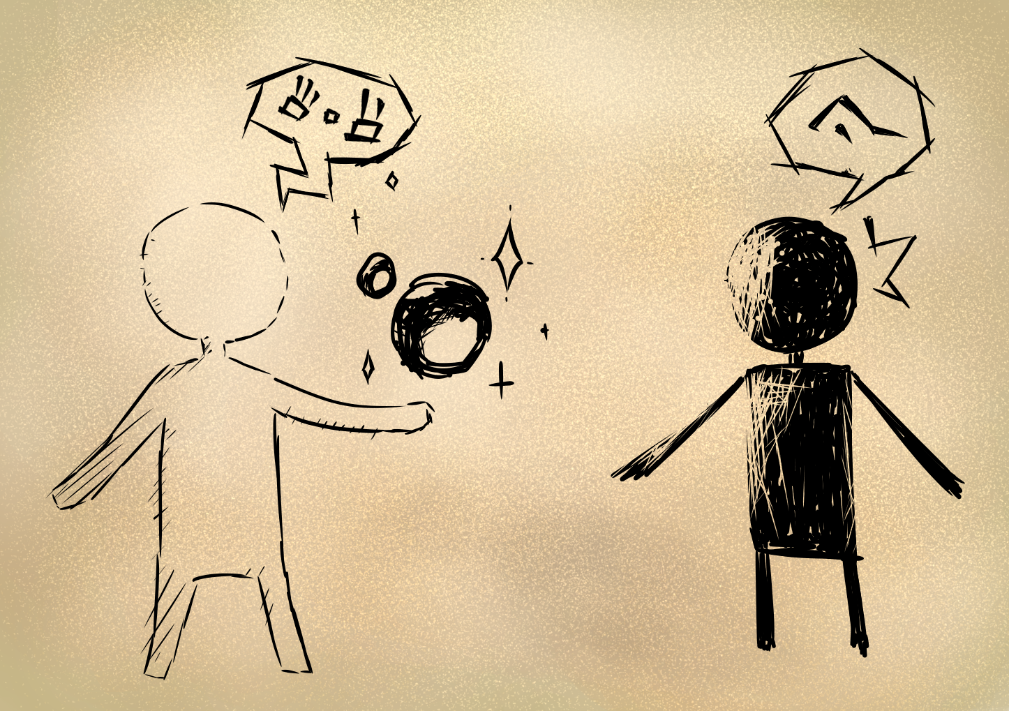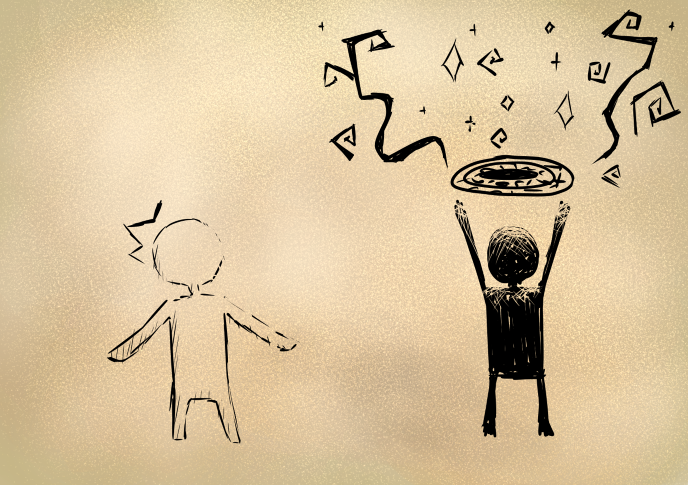 またある時、男は真っ白さんが何もないところから水を生み出したのを見ました。興味を持った男が尋ねると、真っ白さんは”魔法”だと答えました。