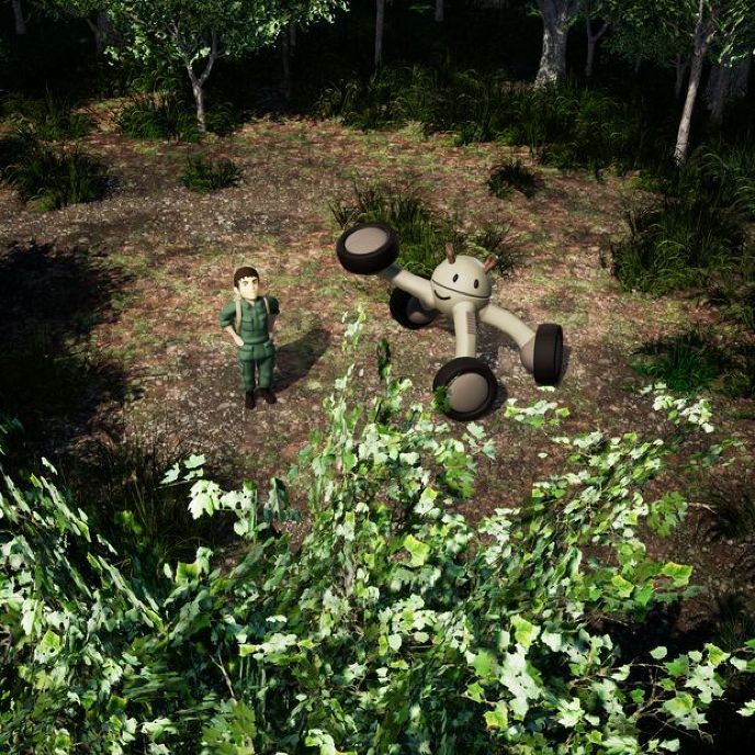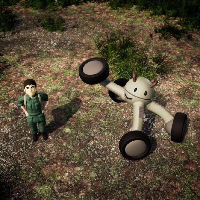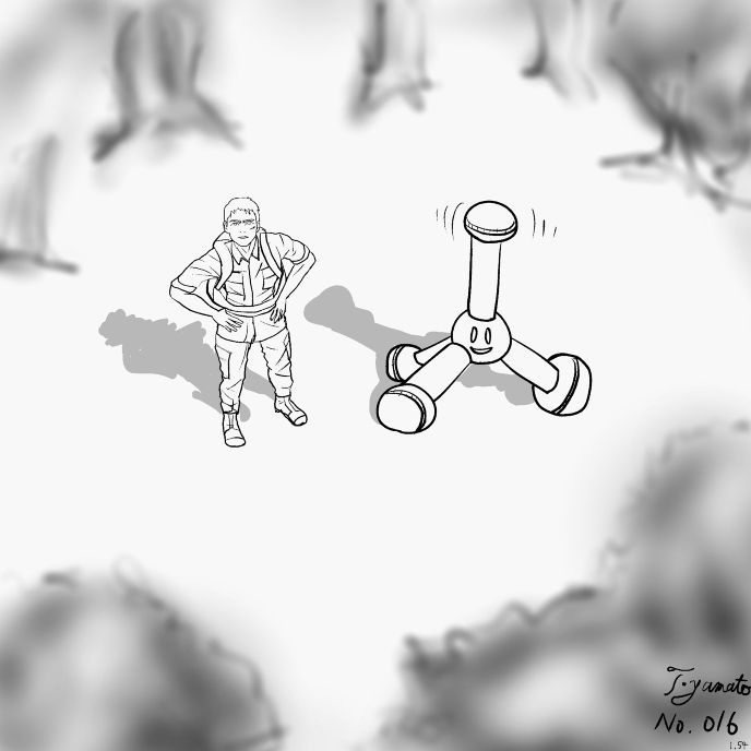 そうですロボットです。正式名称はテット・ランド (Tet Land) というロボット。人一人なら乗せて運べる。また、通信機能とおしゃべり機能もある。いわゆるAI搭載で楽しくおしゃべりできる。中央の球体表面に表示されるニコちゃんマークも動的に変化するので表情も表せる。ゆるキャラ。存在自体が貴重な金属がふんだんに使用されている。動力源は魔法力。これから帰る野営地で定期的にバッテリーみたいなもので魔法力をチャージする。もちろん、エレノアが魔法力をチャージすることも可能。テットの役割は少々長くなるので、別の機会にでも解説したい。