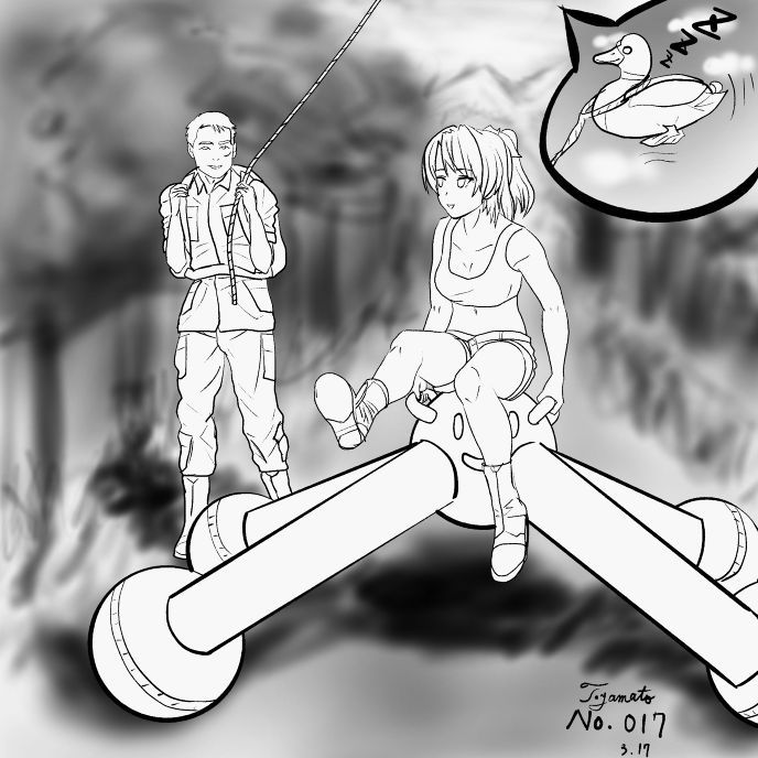 開放感全開のエレノア。後は野営地に帰って「おいしいご飯を食べるのだ~」。いつにも増して軽快におしゃべりを続けるエレノア。いつも通り、アッシュは聞き手に回ったり、時々話したり。平和のな夕暮れ時の風景。