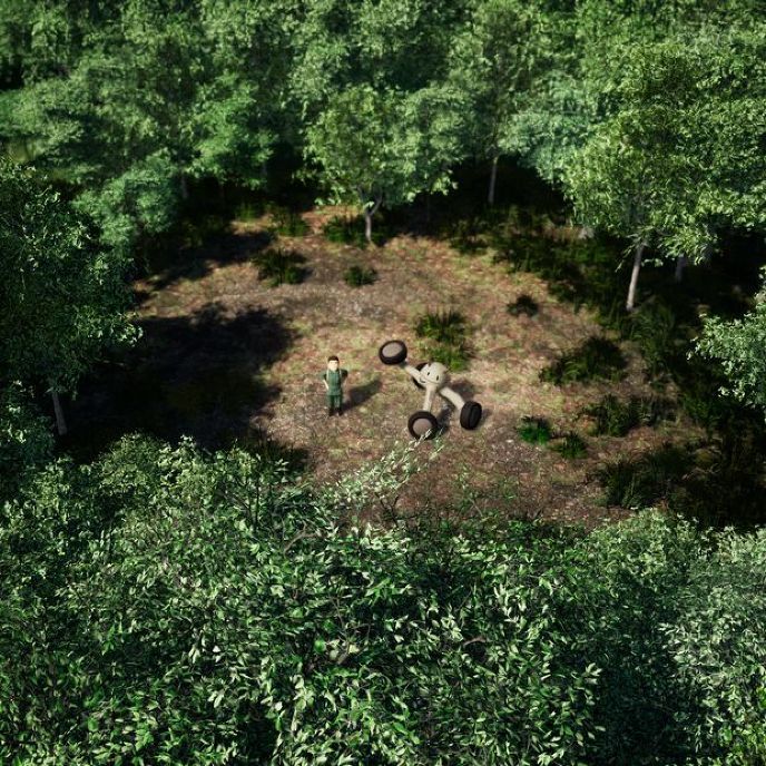 ホバリング状態からゆっくり下降してペーターと共にゆっくり着地。羽を折りたたむペーター。降りるエレノア。