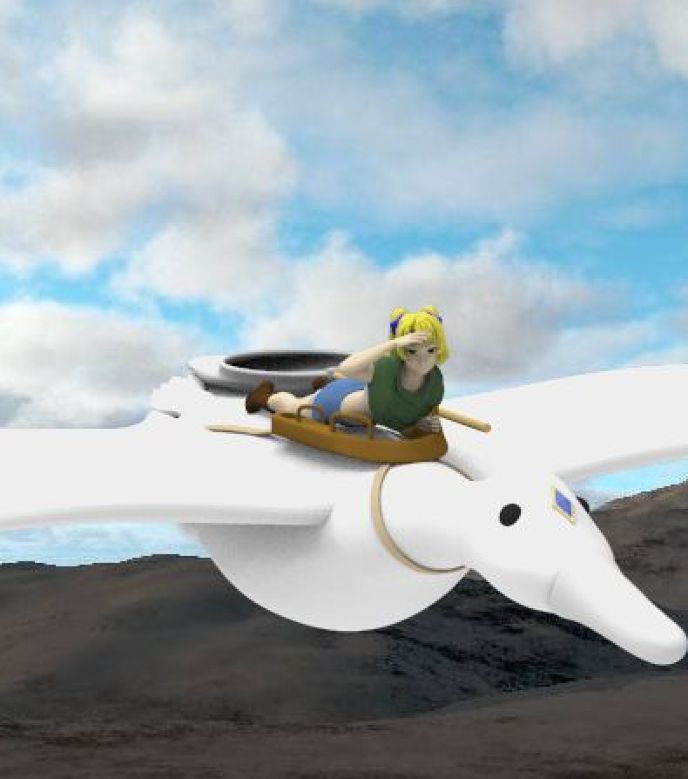 リアル頭身にすると、色んな情報が「リアル」でないとバランスが取れないことに気づいた作者。当然、空や風景もリアル系で模索することになり四苦八苦。モデリング技術も足りないことから、リアル系の造形では絵作りが全く進まないことに気がついた。