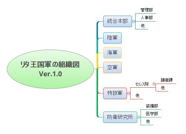 今回はリタ王国の軍隊の組織図と各キャラの所属先のコラム回です。
