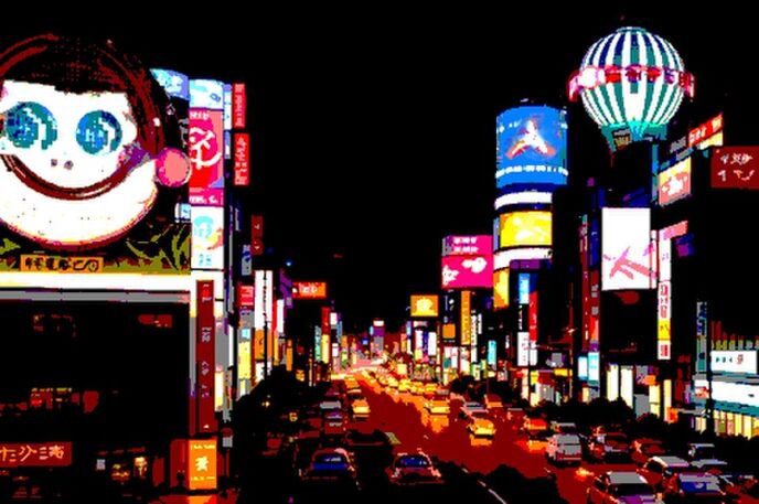 ネオン広告に目を奪われつつ、僕らは交差点を曲がり晴海通りへと入った。