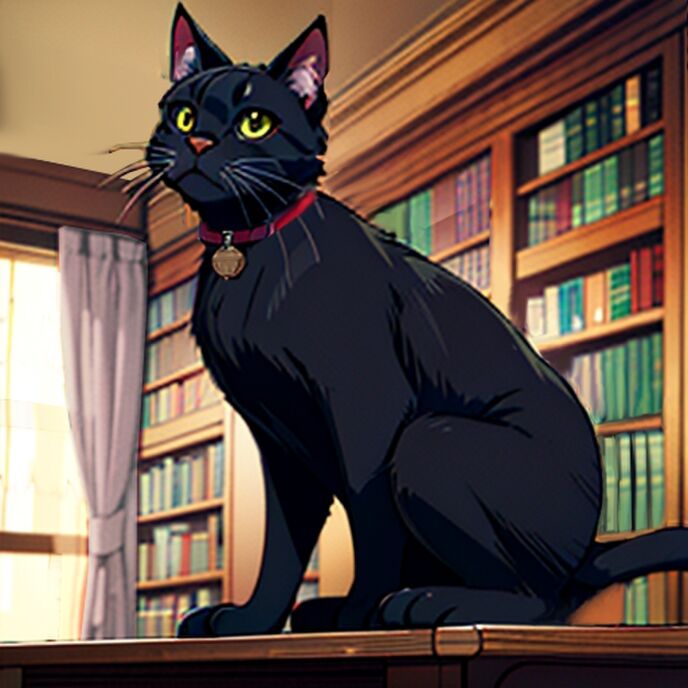 僕が声を上げると、アンカのような物体――鈴付きの赤い首輪をした黒猫は、机上