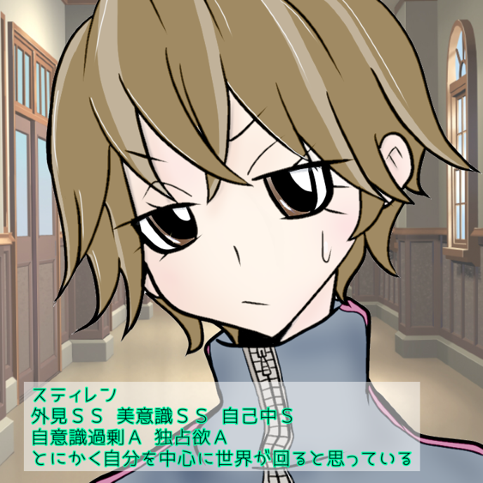 リシェの兄らしく顔立ちは悪くは無いのに、発言と動作が妙に変な印象を受けてしまう。身につけている服は美少女キャラのシャツに、何故かピンク色のウサギの耳のついたカチューシャ。彼なりのこだわりなのだろう。