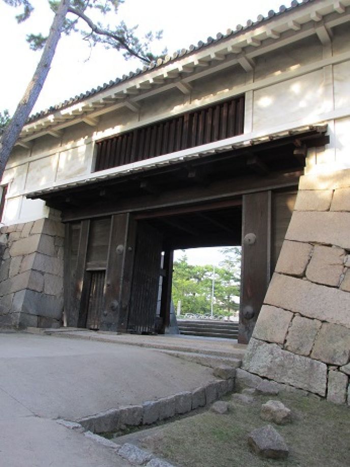 筋鉄(すじがね)御門です。築城時と同じだそうです。名は体(てい)を現す、ですね。
