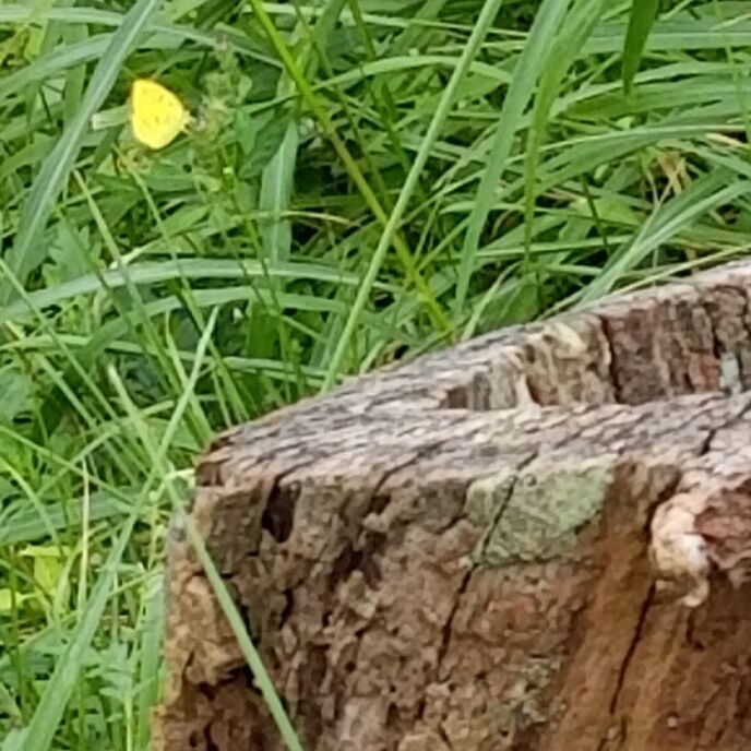 さて、行く途中で川があり、脇の草むらに黄色と紫色の小さい蝶がたくさん舞っていました。しかし、撮れないものですね。止まっているのが1枚撮れましたが、分かります?