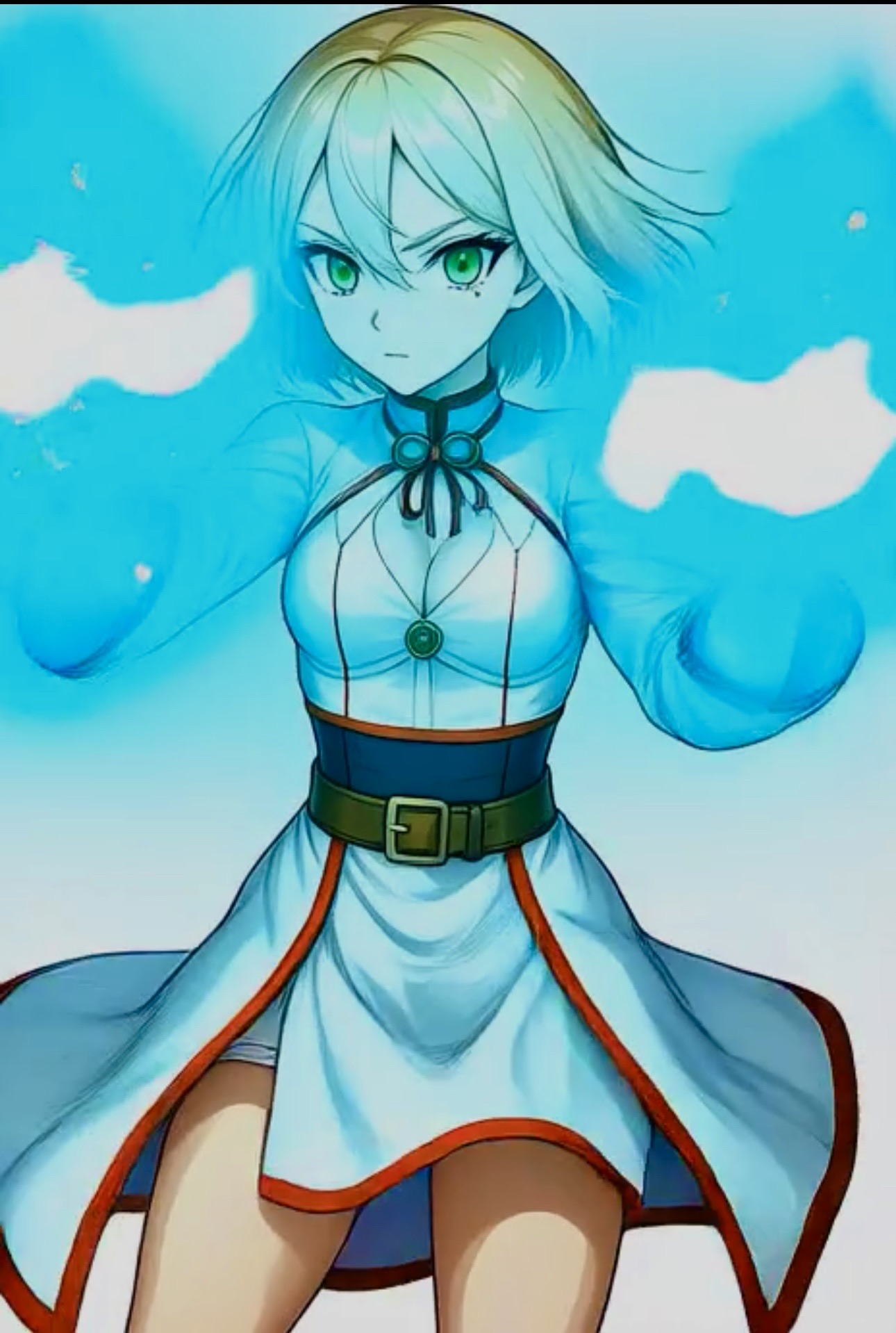 避けられない危機の瀬戸際であるルシアの背後から旋風舞い踊る。戦闘に見合うと思えぬ天女が如き白い服装がせわしなく揺れ動く流麗。