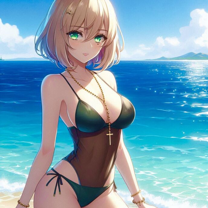 ローダ・ファルムーンへ深い愛情を伝えたいルシア・ロットレンの水着姿。