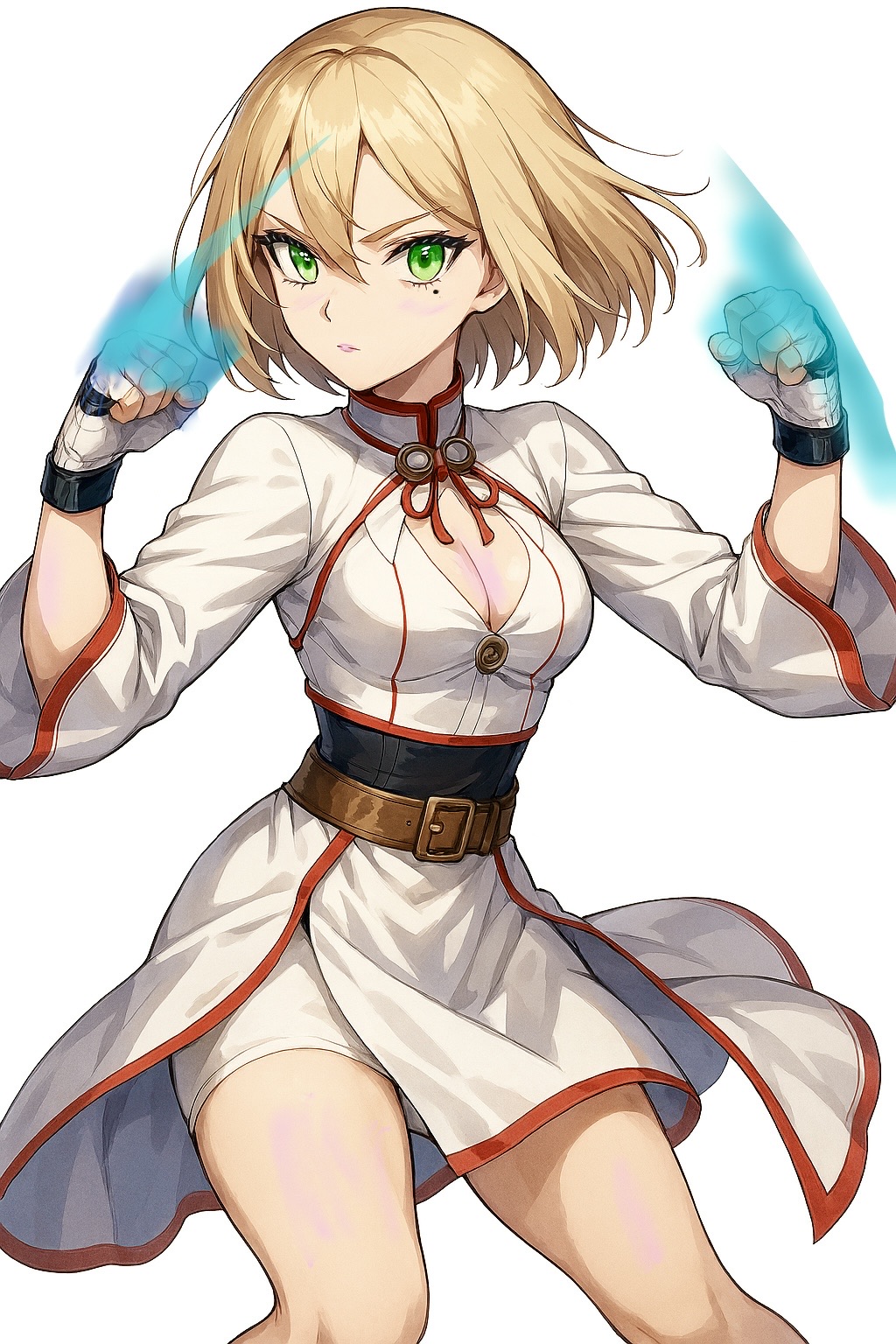 金髪ボブカット、天女が如き萌え袖な白い服装で精霊を付与した手足を振るう不思議な22歳女性。