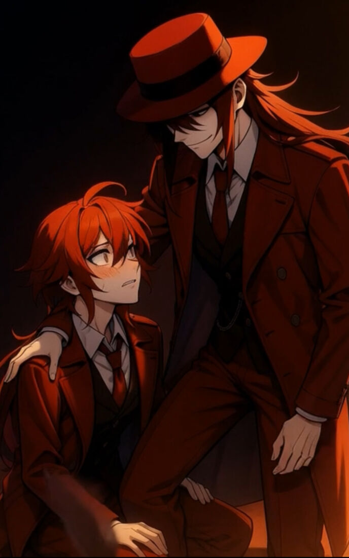 赤いシルクハット、紅色のジャケット着た間者にしては派手過ぎる者を迎えたるは、これまた赤一色の男。