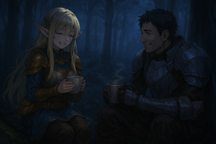 珈琲へ視線を落とし腑に落ちた顔で少しだけ啜るベランドナ。決して嫌な顔色は立てなかった。