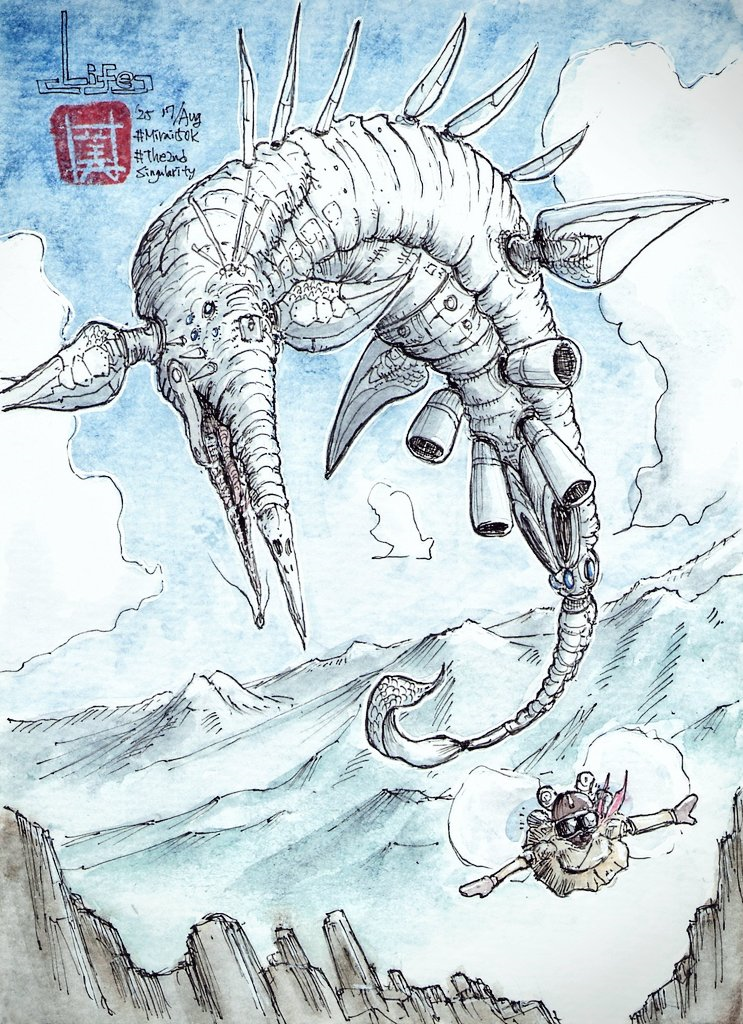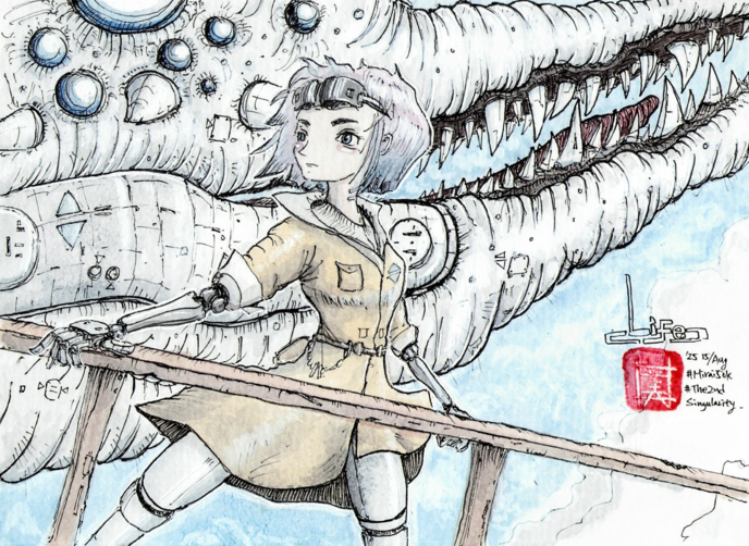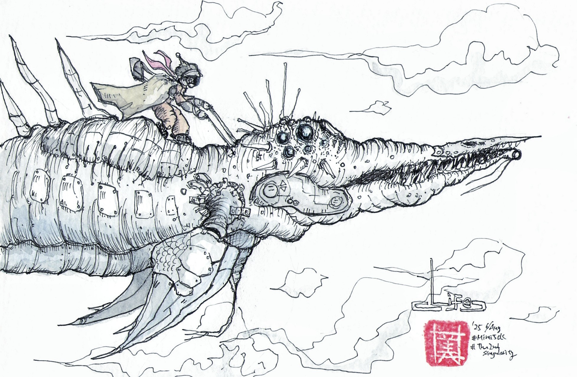 半獣が軽く唸った。何かを見つけたようだ。口を開け、ヒレを広げ、速度を少し落とす。触覚が左前方を指す。南東。