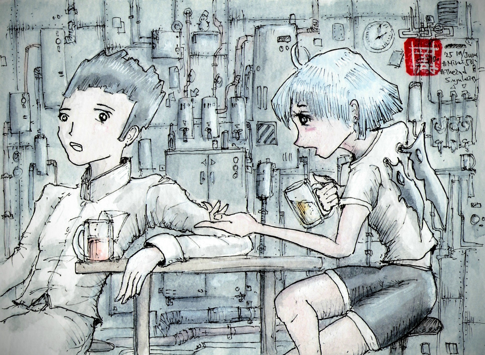"あの場所は誰も知らない。見つけたのは俺の観測球だけど、あそこに入るための細い高い回廊は君の可変する翼じゃないと無理だ。この2人じゃないといけないよ。それにこの季節、風が凪いだ月明かりのなかでしかあそこは通れない。絶対誰にも取られないさ"