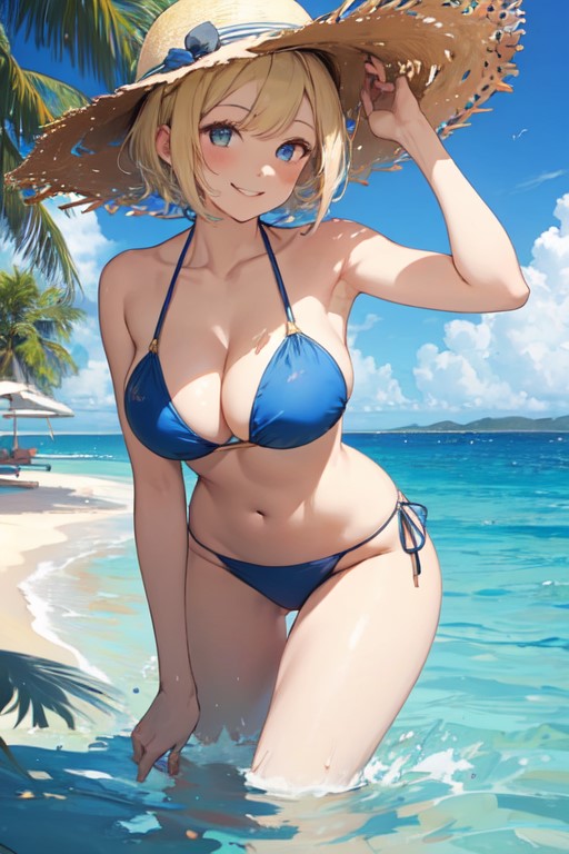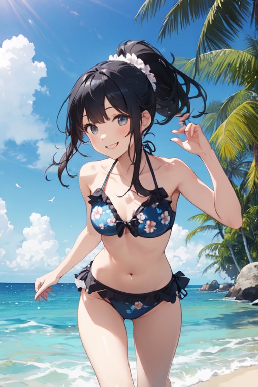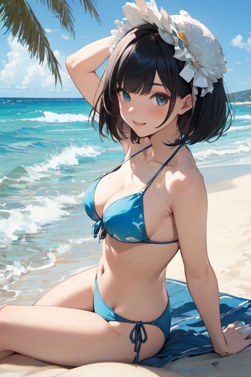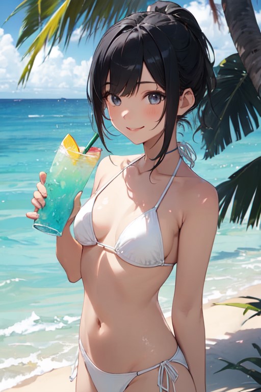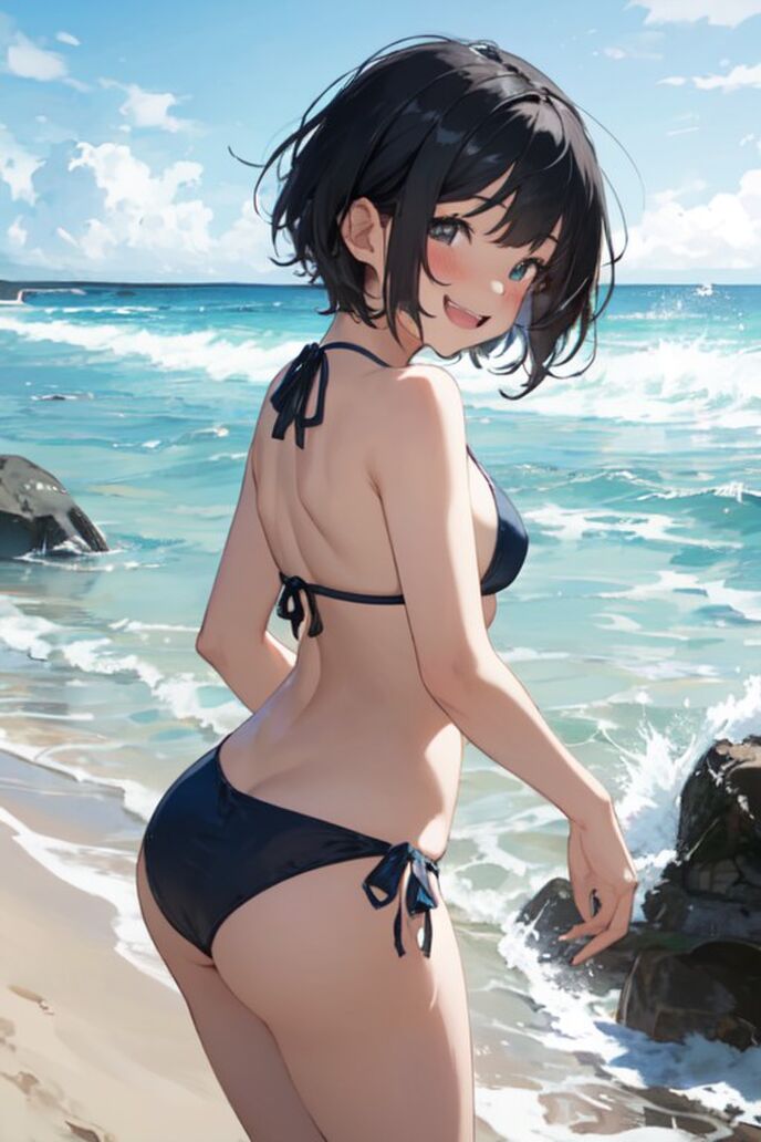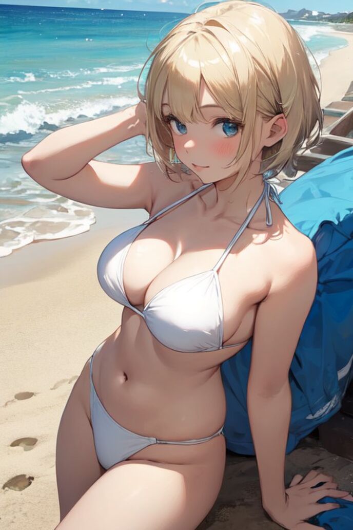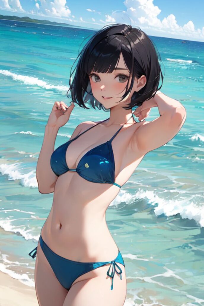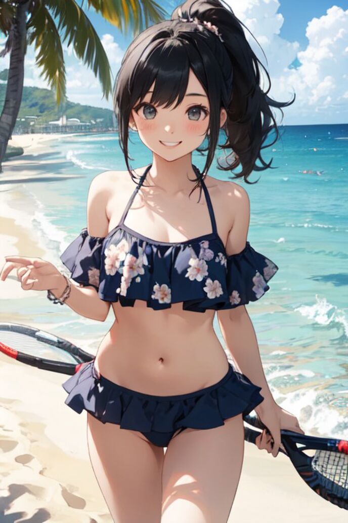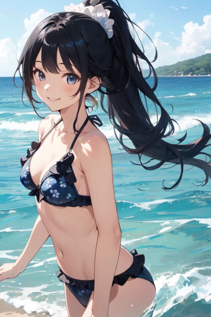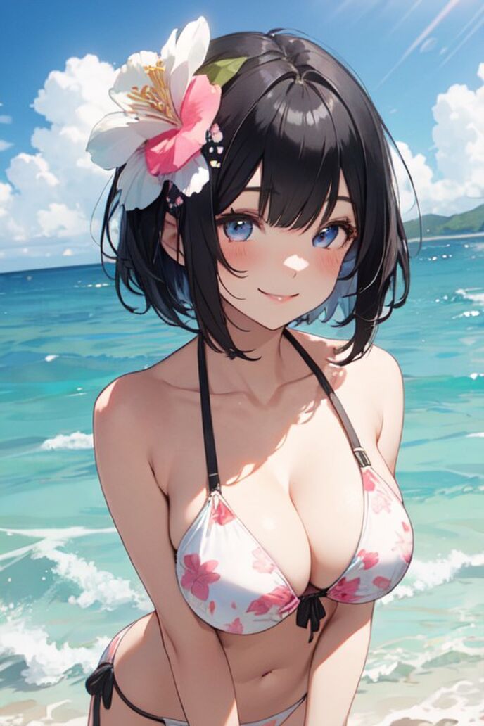 プロンプトも併せて送ってきてくれたんですけど「麦わら帽子」や「花の髪飾り」に「白い砂浜」に「ヤシの木」とかすごく細かいコマンドが入ってるんですよねー!