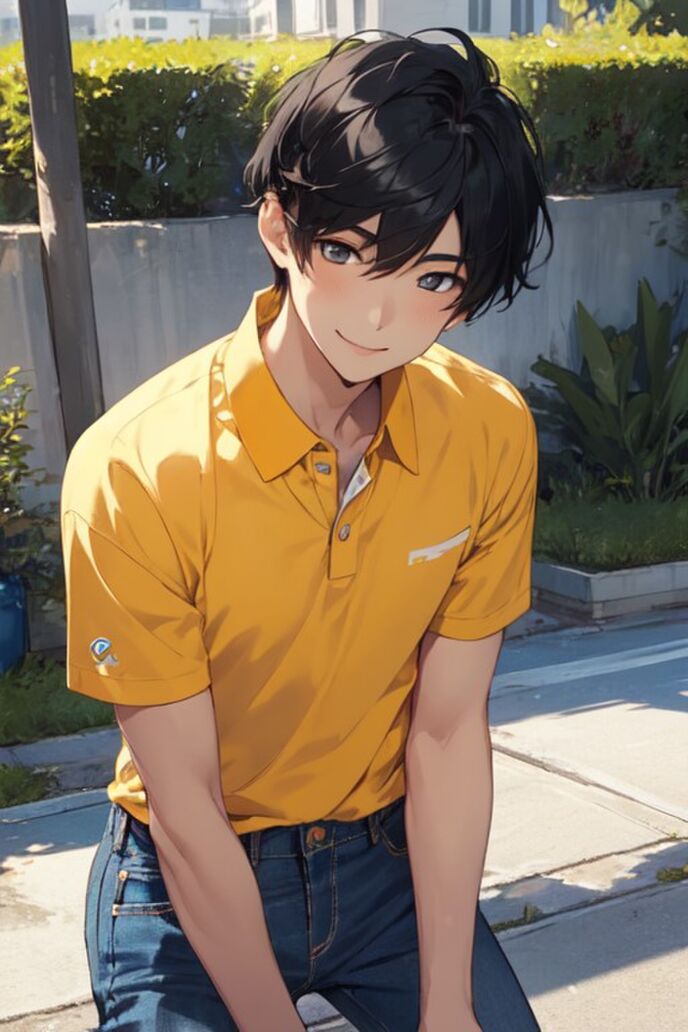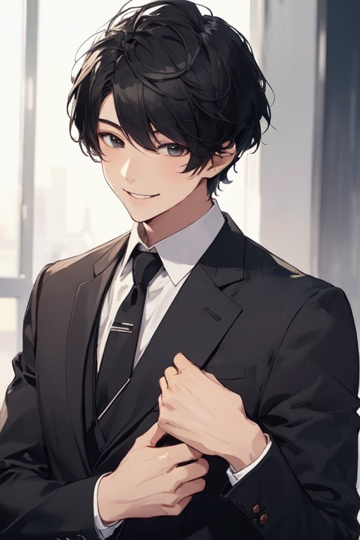 真面目だが強気で、どこか挑発的な笑みを浮かべる青年。