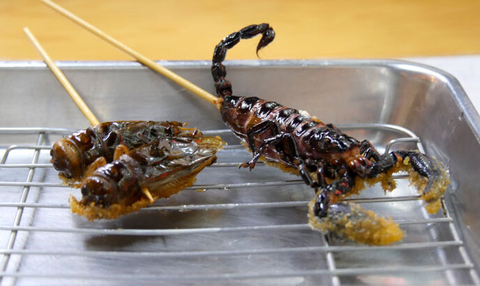 「モチのロンや。おいちゃんらの中学校の頃は買い食いする店もあれへんかった「イナゴ」を新聞紙やテストのわら半紙で焼いて食べたもんや。油で揚げてる分、食べやすいと思うで!東南アジアでは、コオロギは普通に食べられてる食材やしな。それとも食べんのやめてもう出るか?」