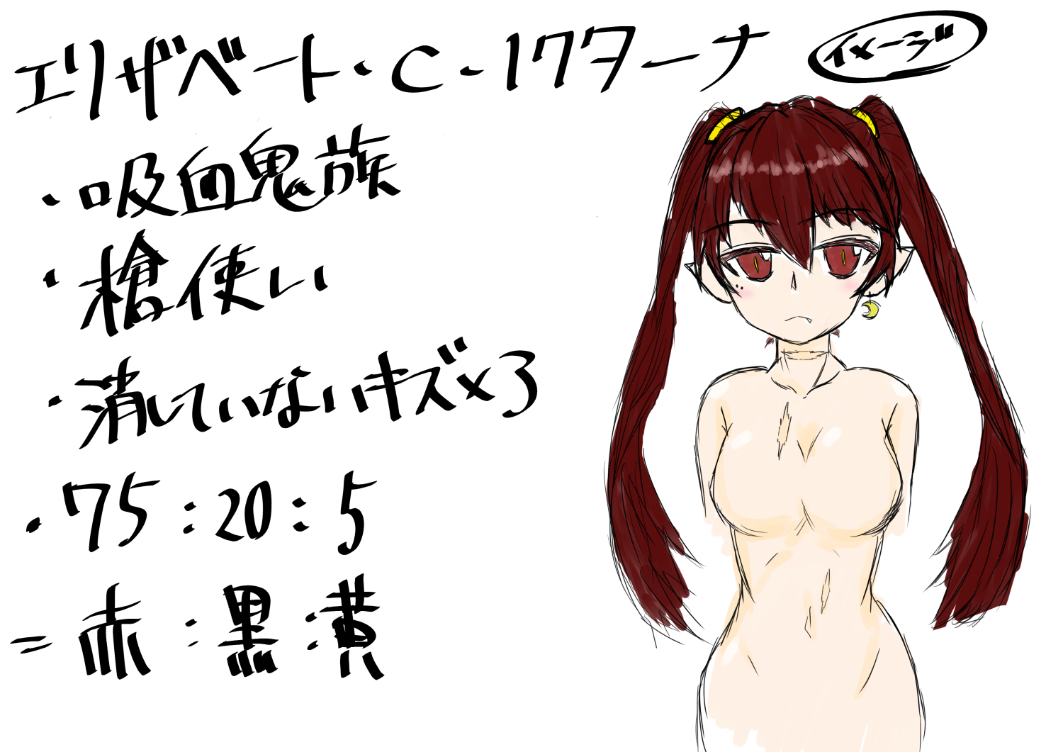 今回登場したエリーさんのイメージ画を置いておきます。服がないのは考える余裕がなかったからです。こんな服はどう? というアイデアある方は感想欄か、私のツイッターで教えてくれると凄い嬉しいです。