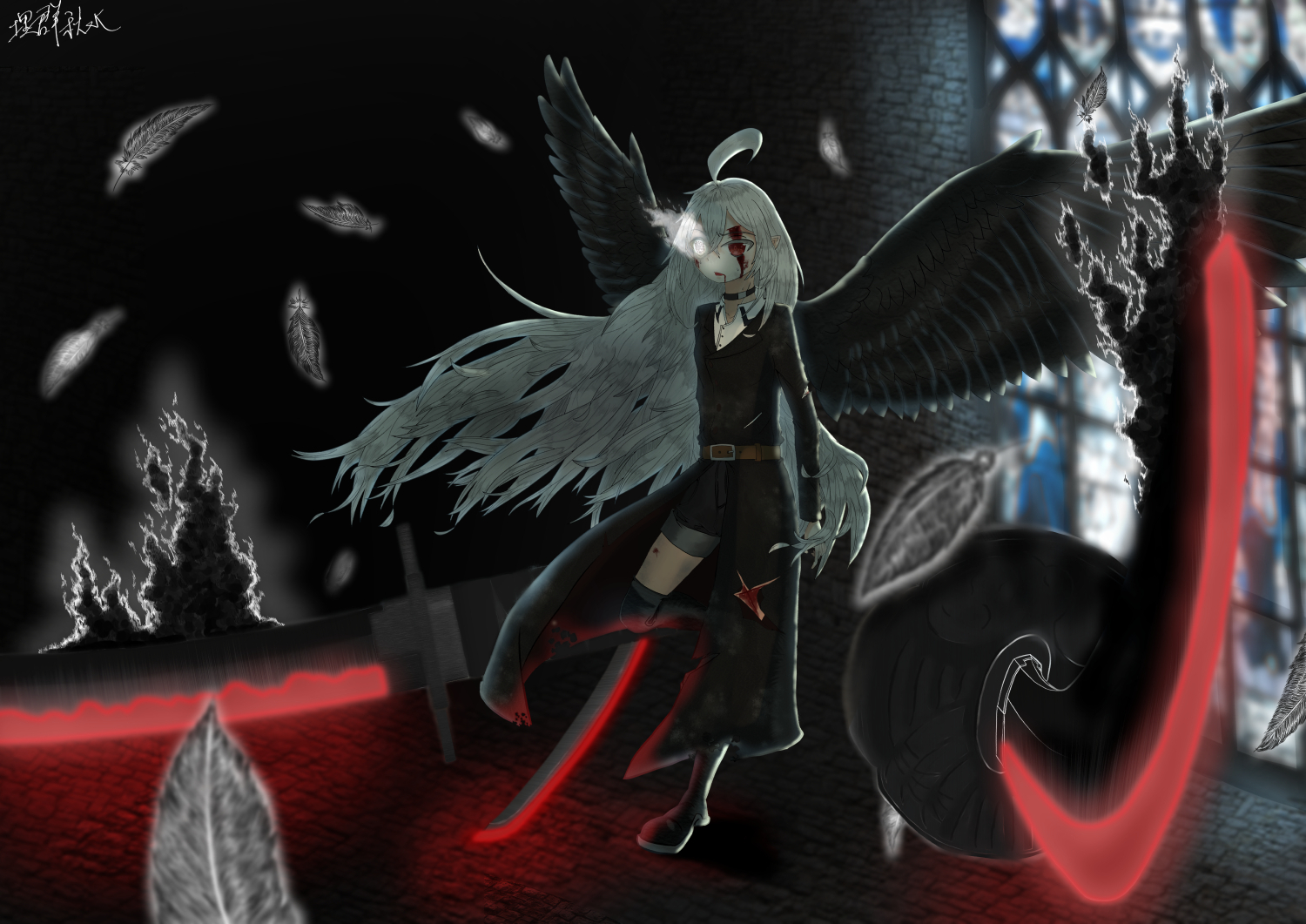 そしてクロエの背後に生える翼にも変化があった。いままでクロエが生み出していた翼は蝙蝠のような物だったが、いま背中にある翼は真っ黒な鴉のような羽だった。そしてそこから落ちた漆黒の羽根は、まるで相反するかのように真っ白に発行している。