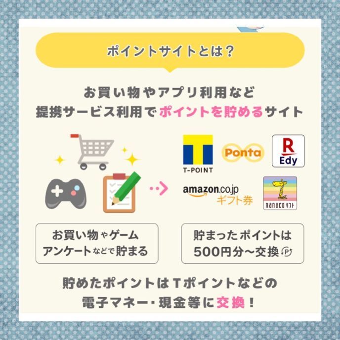 ポイントサイト使用する際の注意点や各サイト説明も更新していくので