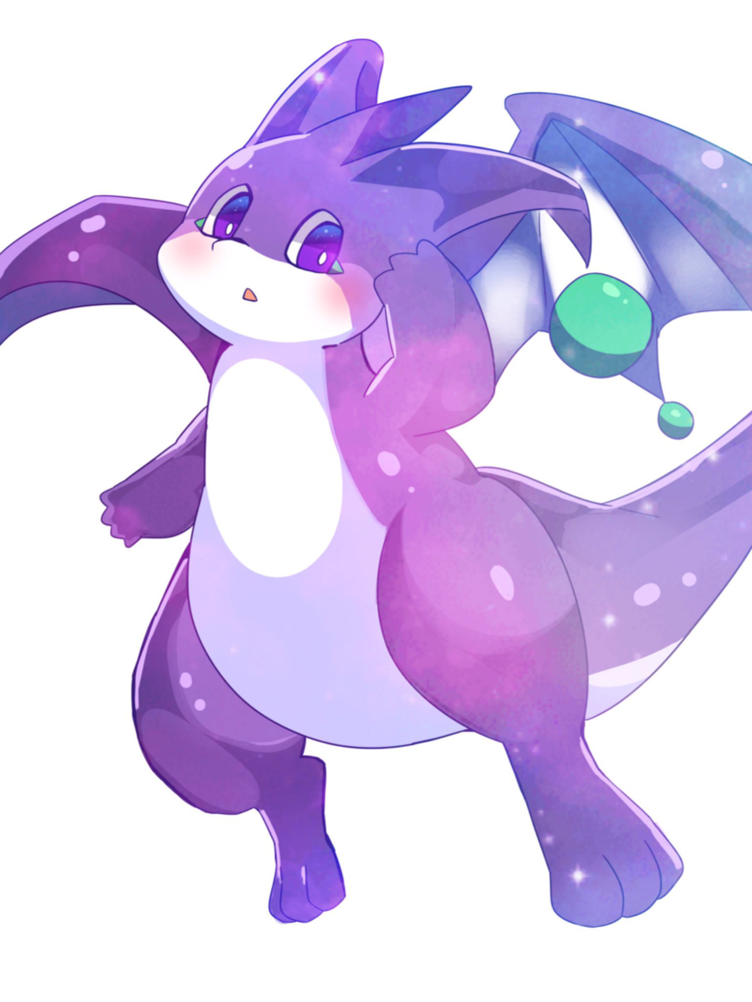 ブライゼが虚空に向かってそう呟くと、空間が歪み、ゲートが出現した。そこからは星空が見えている。そのゲートから、身長が150cmほどの、可愛らしい菫色の体色をした二足歩行のドラゴンが現れた。