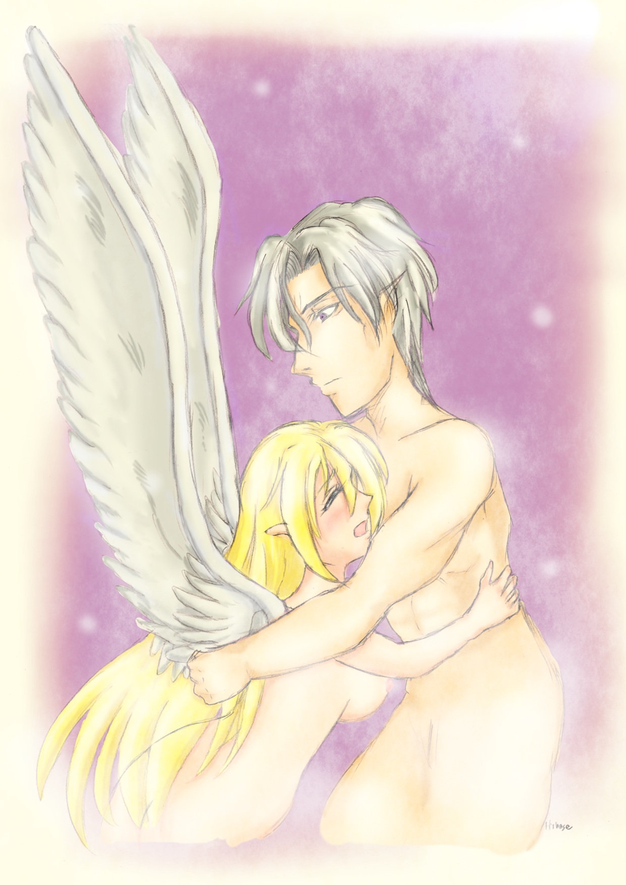 腰までの長さで少しはねた黄金の髪、閉じられているが睫毛が長く形の良いアーモンドアイ、大きな白い翼。