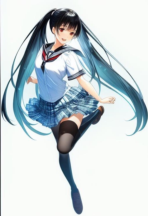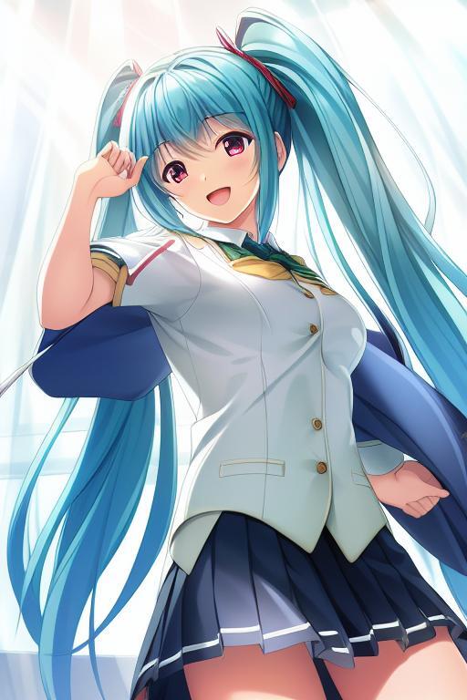 「The animecharactor has green pigtail」
