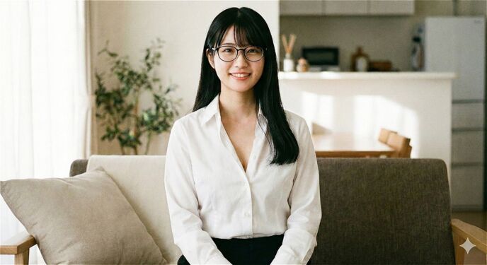 ソファーに座っている自分の