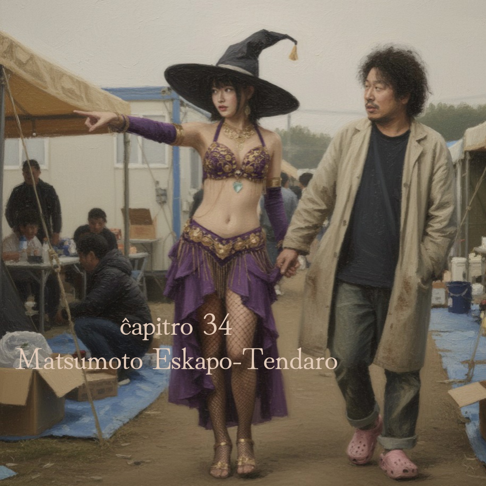 大きな声に振り向くと、先程キャンプに入るのを助けてくれたブックキャストの大男が立っていた。その男は身長190㎝、全身にゴリラの様に筋肉が付き、上半身は裸だがトライバルのタトゥーが満遍なく彫り込まれている。髪は左半分がそっくり無く、右半分は濡れたようなウェーブの黒髪の長髪で前髪の隙間から覗く右目の瞳が炎の様な揺らめきを放っている。下半身にはピッタリとしたオレンジ色のレギンスに白いレスリングシューズを履いていた。
