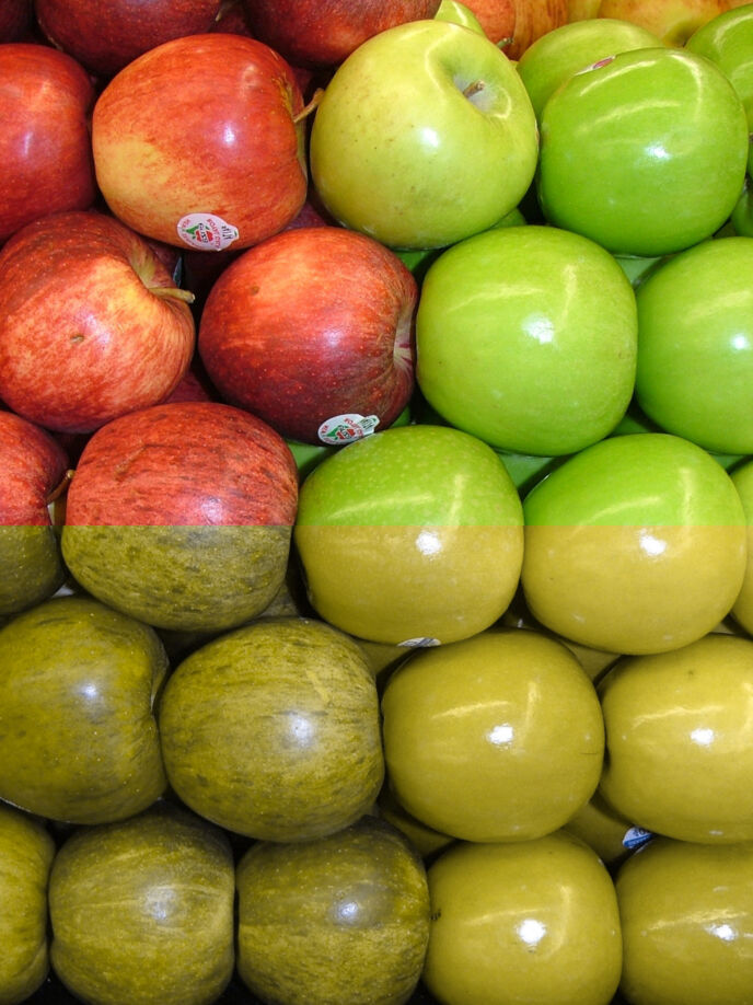 色覚異常だと赤色いリンゴが緑色に見えているらしいです