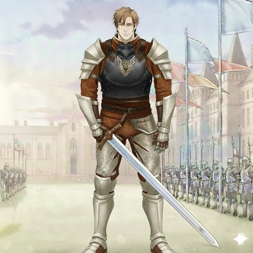 騎士団長だった。大柄で筋肉質、鋭い眼光を持つ男。無精ひげの顔には傷跡があり、腰の剣も深く傷ついていた。その姿だけで場の空気が変わる。