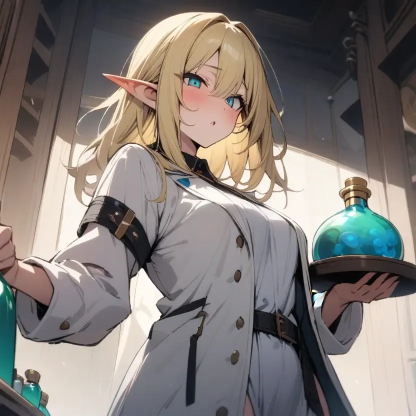 出てきたのはエルフのような女の子が白衣姿で裏からカウンターに出てきた。