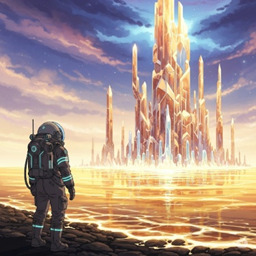 シロッコがワームホールを抜けると、眼前に広がるのは、太陽の光を反射して金色に輝く海だった。琥珀のように透き通った液体で満たされたこの惑星は、古き星図には「エルドラ」と記されていた。大気圏に突入すると、琥珀の海面から突き出すようにそびえ立つ、巨大な結晶質の塔が見える。あれがこの惑星の唯一の文明の痕跡だろうか。